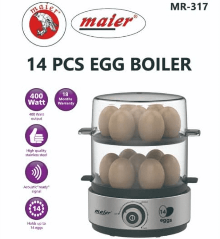 توان دستگاه 400 وات و قابلیت پختن 14 عدد تخم مرغ را بصورت همزمان دارد. دارای کلید ولومی روشن بودن دستگاه است. جنس بدنه دستگاه روکش استیل است که علاوه بر زیبایی به آسانی تمیز میشود. به همراه دستگاه ، سینی نگه دارنده تخم مرغ و بشقاب و لیوان مخصوص آب موجود می باشد. محفظه دستگاه استیل ضد زنگ ظرفیت: 14 عدد تخم مرغ درب شفاف دارد قفسه تخم مرغ قابل جابجایی دارد کلید ولومی روشن/خاموش دارد پیمانه اندازه گیری آب دارد
