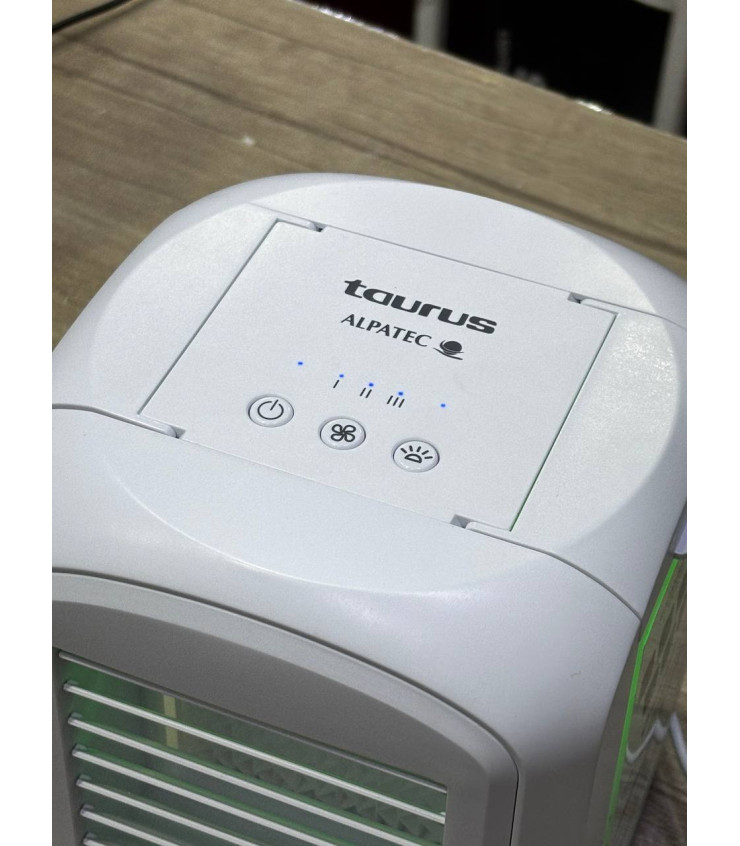 مینی کولر آبی تاوروس taurus CO2001 بامحصولی ایدهال برای لذت بردن از هوای تازه وخنک است . این کولر با توجه به داشتن ابعاد کوچک وحجم کم میتواند فضای تا 10 الی 15 متر کاربرد داشته باشه. تاوروس اسپانیا مینی کولر خود را به گونه ای طراحی کردهاست که میتوان ان را بر روی میز قرار داد ودر منزل ومحل کار از ان استفاده کرد. حالت پخش نور در 6 رنگ با هفت حالت قابلیت تنظیم قدرت پرتاپ باد در سه سطح امکان تنظیم جهت پرتاپ باد وداشتن دو مخزن اب چدا شونده واز دیگر قابلیت های کولر مینی تاوروس است