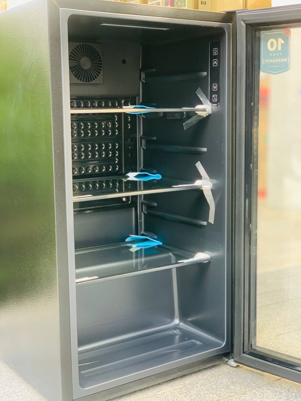 یخچال هتلی درب شیشه ای رنگ مشکی چرمی هایسنس بهترین انتخاب برای اشپزخانه شماست این یخچال بال ظرفیت 7 فوت که برابر با 122 لیتر دارای 4 طبقه مجزا وبا کیفت هست ار تفاع این یخچال 84 سانتیمتر و با عرض 47 سانتیمتری و عمق 40 سانتیمتری فضای کمی از اشپزخانه یا محل کار یا هتل و هر جای که لازم باشه میگیرد این یخچال با درب شیشه که دارد میتوانید داخل یخچال را به راحتی ببینید واز داخل وموجودی داخل ان اگاه باشید یخچال هایسنس قیمت مناسب و کیفیت بالا در فروشگاه بازار بانه خرید موجوده میتوانید از طریق شماره واتساپ 09181842809 یا از طریق سایت ثبت سفارش نمایید